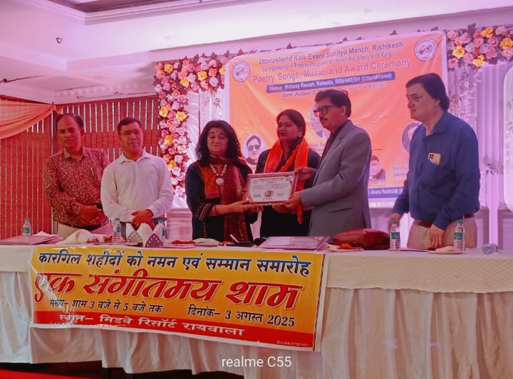 ऋषिकेश:(जीशान मलिक)उत्तराखंड कला एव साहित्य मंच ऋषिकेश द्वारा कारगिल शहीदों को नाम एवम सम्मान समारोह का आयोजन मिडवे रिसॉर्ट रायवाला में किया गया ।कार्यक्रम में ऋषिकेश की कुछ मशहूर हस्तियों का सम्मान किया गया।