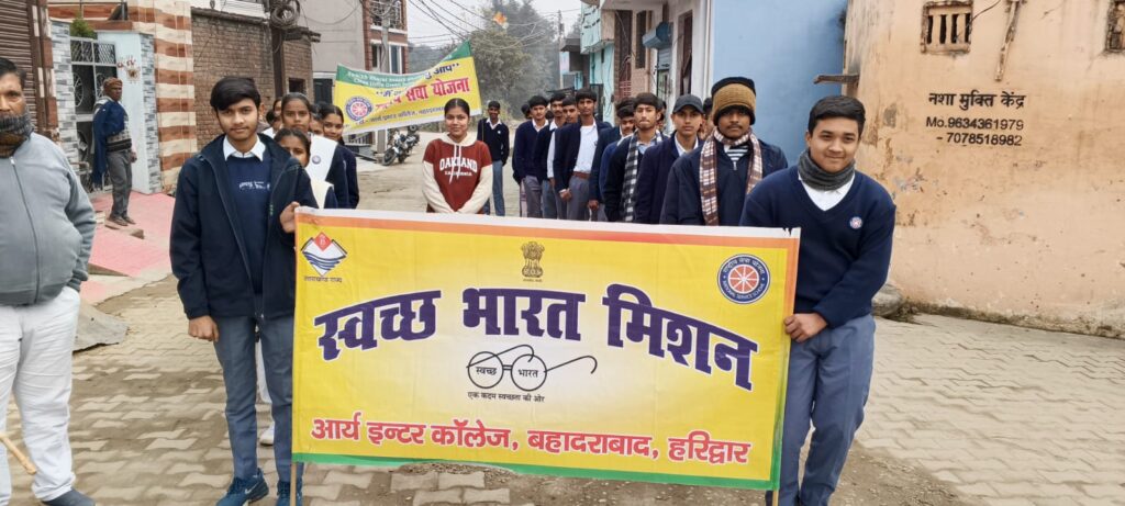 हरिद्वार:(जीशान मलिक)आर्य इंटर कॉलेज बहादराबाद की राष्ट्रीय सेवा योजना (राष्ट्रीय सेवा योजना) इकाई द्वारा आयोजित सात दिवसीय विशेष शिविर के अंतर्गत समाज में स्वच्छता के प्रति जन-जागरूकता फैलाने के उद्देश्य से एक स्वच्छता रैली का आयोजन किया गया।